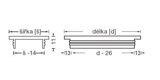 S - mřížka větrací - k vestavbě do dveří nebo desek - minimální síla desky je 14 mm. Otvory v mřížce 40 x 7,5 mm.