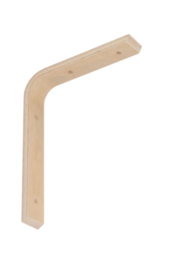 Jednoduché konzoly z ohýbané překližky. Světlá barva bukového dřeva způsobuje, že se zvlášť dobře hodí k policím vyrobeným ze stejného materiálu. Surové dřevo, ze kterého byly vyrobené, lze snadno natřít na libovolnou barvu lakem, barvou nebo mořidlem.
