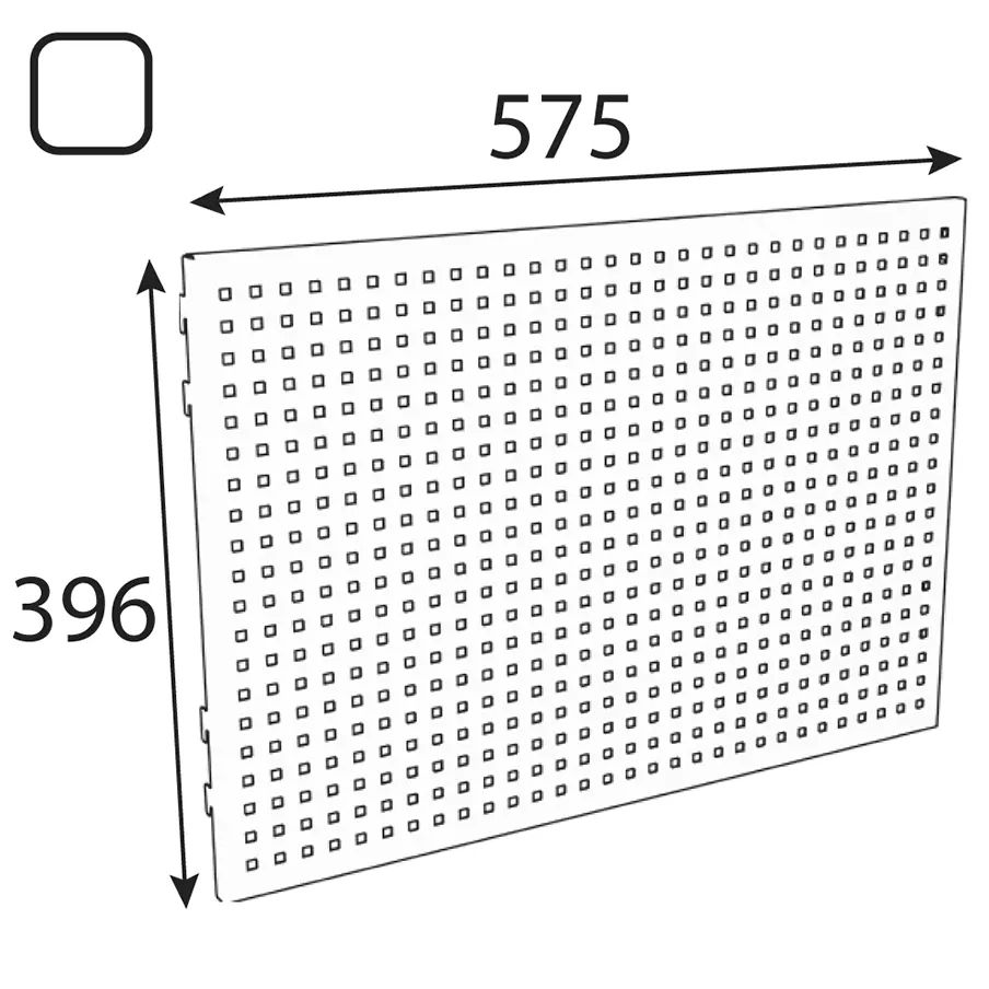 Deska na nářadí s perforací, která umožňuje umístění dalších nádob a háčků na nářadí. Rozměr 576x396,6mm.