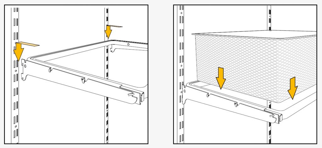 Rám koše se používá k připevnění košů a boxů k svislým lištám a zároveň umožňuje vysouvání košů ARWL, ARWM a plastových boxů ARWO jako šuplíky. Rozměr: 572x426mm