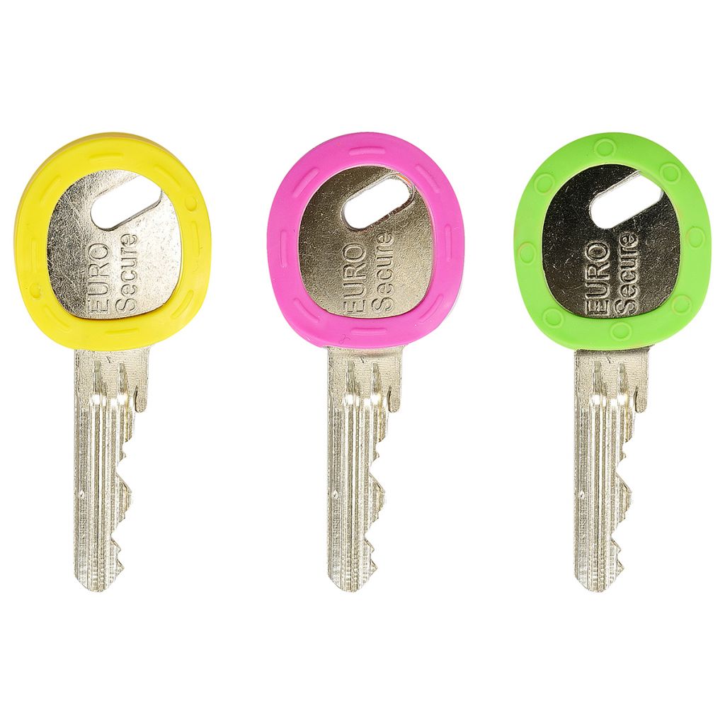 Použití pro klíče: EURO Secure Materiál TPE: Vysoce odolný proti opotřebení, měkčený, šetrný k životnímu prostředí Hmotnost netto: 0,009 kg / 8 ks Balení: 8 ks mix barev 1 ks á barva Barva: žlutá, oranžová, červená, růžová, starorůžová, tyrkysová, modrá, zelená