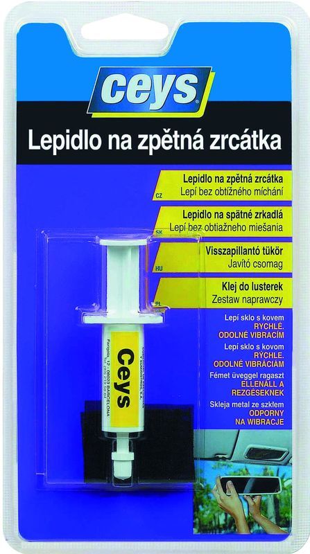 LEPIDLO NA ZPĚTNÁ ZRCÁTKA lepí všechny typy zpětných zrcátek s kovovou podpěrkou ke sklu (normální, laminované nebo zabarvené).
