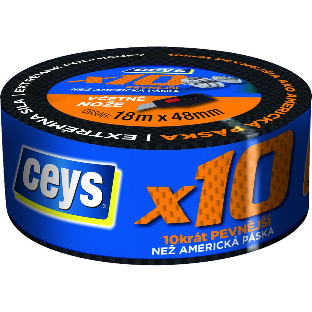 Ceys Profesionální páska x10 je 10krát pevnějsí než Americká páska. Tato opravná páska s vysokou přilnavostí k široké škále materiálů je určená pro extrémní podmínky. Je vyztužena mřížkovou strukturou vláken a je opatřena vysoce přilnavým a maximálně pevným lepidlem. Díky tomu je z mechanického hlediska pevnější. 100% vodotěsná.