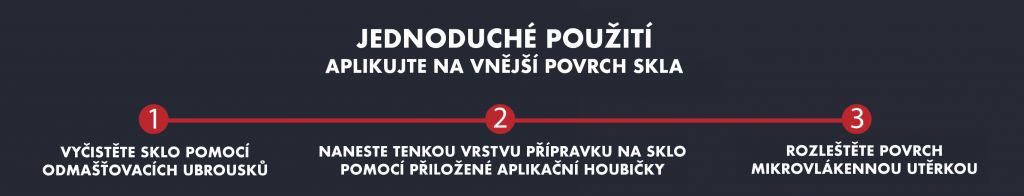 ! Upozornění: nepoužívejte přípravek na sklo, na kterém již je nanesena jiná dlouhotrvající ochranná vrstva, jako je vosk, keramická ochrana, apod !