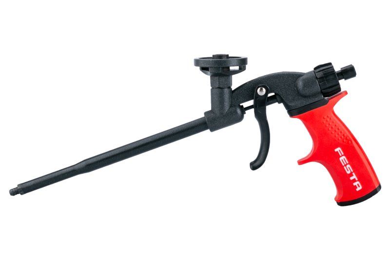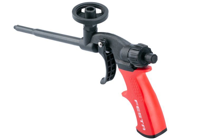 profesionální celokovová pistole na PU (polyuratové) pistolové pěny s teflonovou povrchovou úpravou plynulá regulace množství pěny, citlivá spoušť pro přesné a pohodlné dávkování, plastové aplikační trubičky pro přesné nanesení pěny na požadované místo závit pro uchycení s teflonovou vrstvou pro snadnější čištění teflonová kulička ventilu, vyměnitelná tryska 38030