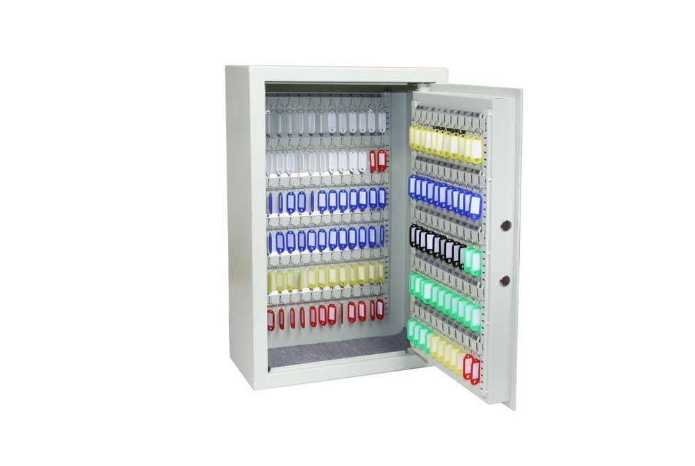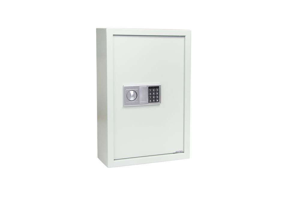 OCELOVÝ SEJF NA KLÍČE – 133 HÁKŮ Elektronický zámek s možností nastavení MASTER kódu. Výškově nastavitelné lišty s háky na klíče. Barevné jmenovky s kroužky na klíče. Rozměr š/v/h: 420 x 650 x 200 mm Hmotnost netto: 20 kg Síla materiálu: dveře 4 mm, plášť 1,5 mm Balení vč. baterií, mont. materiálu a 2 ks nouzových klíčů. Barva: slonová kost (RAL 7035)