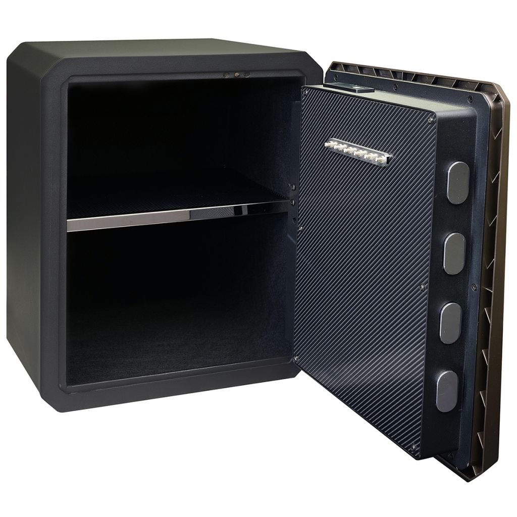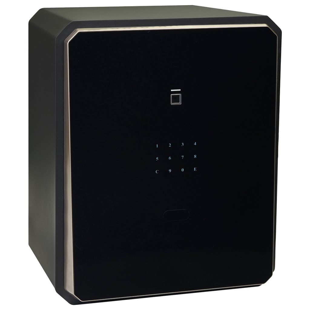 Ocelový sejf s elektronickým zámkem na číselný kód a otisk prstu