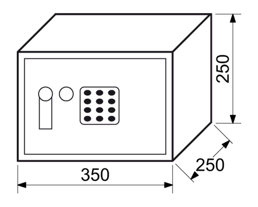 OCELOVÝ SEJF S ELEKTRONICKÝM ZÁMKEM, ČÍSELNOU KLÁVESNICÍ A PÁČKOU K OTEVŘENÍ Uživatelský kód může obsahovat 3-8 číslic, tzn. až 100 000 000 kombinací kódů. Časová blokace zámku po 3 chybných pokusech. Indikace nízkého stavu baterie. Síla materiálu: dveře 4 mm, plášť 2 mm Rozměr vnější š/v/h: 350 x 250 x 250 mm Rozměr vnitřní š/v/h: 346 x 246 x 190 mm Objem: 16 l Hmotnost netto: 8,8 kg Možnost ukotvení do zdi, nebo podlahy. Balení vč. baterií AA 4 ks, 2 ks nouzových klíčů, vnitřní plstě, 1 ks police, ocelových hmoždinek a šroubů. Barva: šedá (RAL7016)