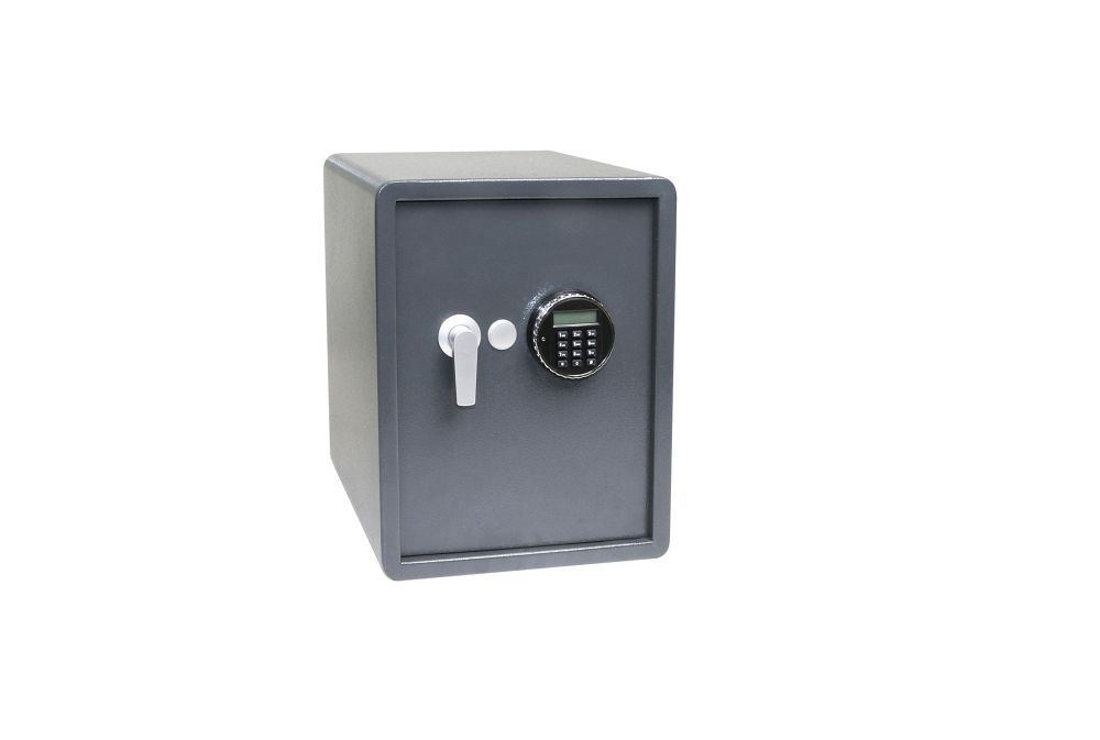 OCELOVÝ SEJF S ELEKTRONICKÝM ZÁMKEM S ALARMEM, PODSVÍCENÝM LCD DISPLEJEM A PÁČKOU K OTEVŘENÍ Alarm se spustí při třetím zadání nesprávného kódu, dále možnost aktivovat alarm pro případ neoprávněné manipulace se sejfem. Možnost nastavení master kódu. Rozměr vnější š/v/h: 350 x 450 x 350 mm Rozměr vnitřní š/v/h: 346 x 446 x 290 mm Objem: 45 l Hmotnost netto: 16,1 kg Síla materiálu: dveře 4 mm, plášť 2 mm Barva: šedá (RAL7016) Možnost ukotvení do zdi nebo podlahy. Balení vč. baterií AA 4 ks, 2 ks nouzových klíčů, 1 ks police, vnitřní plstě, ocelových hmoždinek, šroubů a externího zdroje.