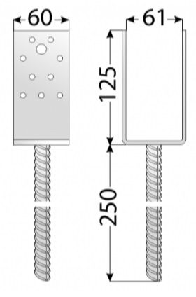 Je určen k přenášení velkých zátěží. Usnadňuje smontování dřevěných prvků s betonem, zajistí vhodnou vzdálenost dřeva od podkladu. Materiál: S235. Tloušťka: 4,0 mm. Upevnění: Kroužkové hřebíky ANCHOR o4; Vruty do dřeva o12; Šrouby M12.
