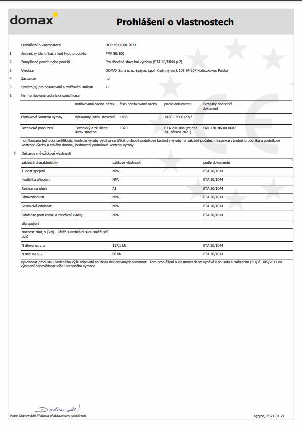 Patka sloupku PMF - základna používaná ke spojování s betonem dřevěných sloupů. T-kus umístěný v dolní části základny umožňuje opření trámu, čímž je zlepšená stabilita konstrukce a je zaručená dodatečná dilatace sloupu od základny.