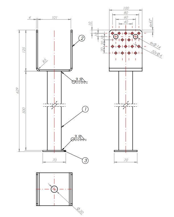 DO patka sloupku PSS100 R500 101X629X100X4,0 ZNO