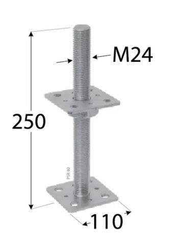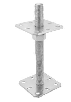 Základna sloužící k upevnění dřevěných prvků v základu, určená pouze pro svislé zatížení. Nastavení umožňuje určit výšku sestavené konstrukce. Zjednodušuje montáž dřevěných elementů na beton. Díky regulaci lze nastavit výšku montovaného elementu. Materiál: S235 + galvanický pozink stříbrný. Tloušťka: 4,0 mm. Uchycení: ANCHOR tesařské hřebíky o4; Vruty do dřeva o10; Šrouby M10, Kotvy do betonu M10.