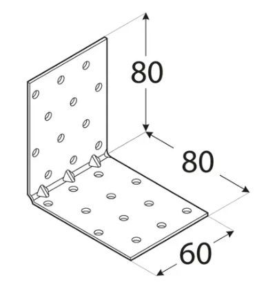 Standardní L profily s univerzálními otvory. Díky množství vyvrtaných otvorů lze pomocí těchto úhelníků provést mnoho jednoduchých i složitých spojů. Vhodně promyšlené prolisy zvyšují jejich odolnost proti ohybu - díky tomu mohly být vyrobeny z tenčího materiálu, aniž by tím byla ovlivněna jejich pevnost. Materiál: DX51D + Z275. Tloušťka: 1,5 mm. Uchycení: ANCHOR tesařské hřebíky o4.