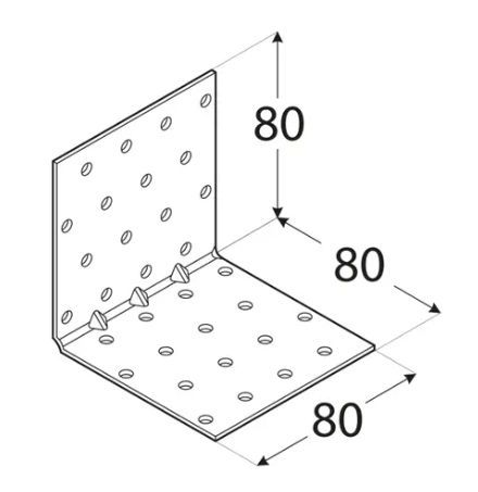 Standardní L profily s univerzálními otvory. Díky množství vyvrtaných otvorů lze pomocí těchto úhelníků provést mnoho jednoduchých i složitých spojů. Vhodně promyšlené prolisy zvyšují jejich odolnost proti ohybu - díky tomu mohly být vyrobeny z tenčího materiálu, aniž by tím byla ovlivněna jejich pevnost. Materiál: DX51D + Z275. Tloušťka: 1,5 mm. Uchycení: ANCHOR tesařské hřebíky o4.