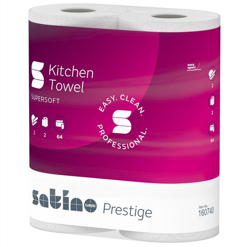 Kuchyňská utěrka Satino Prestige. 2 vrstvá celulóza. 2 x 14 m, 64 útržků, 2 role v balení.