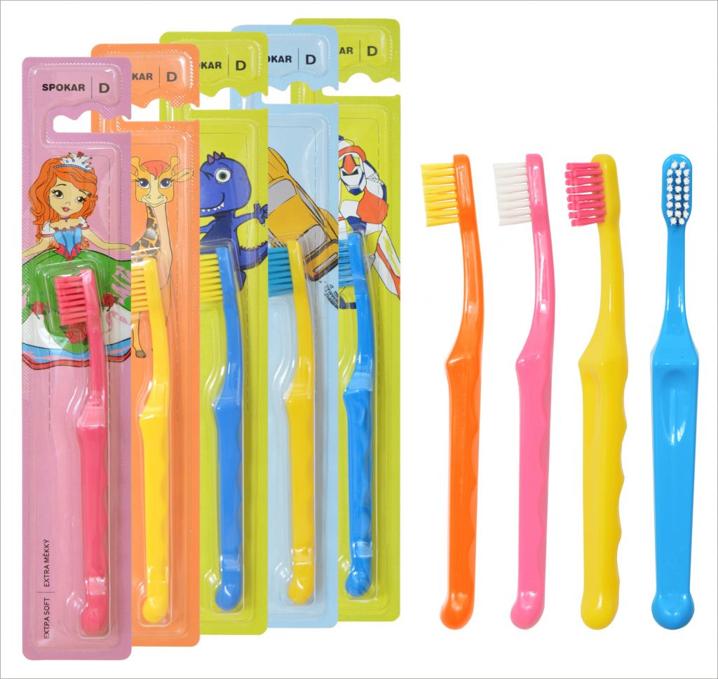 Dětský zubní kartáček SPOKAR D je osazený extra měkkými vlákny s precizně zaoblenými konci, která účinně odstraňují zubní plak a jsou šetrná k dásním. Ergonomicky tvarované držadlo bez měkkých částí umožnuje dětem přirozené držení a snadnou kontrolu kartáčku při čištění. Pro děti do 6 let.
