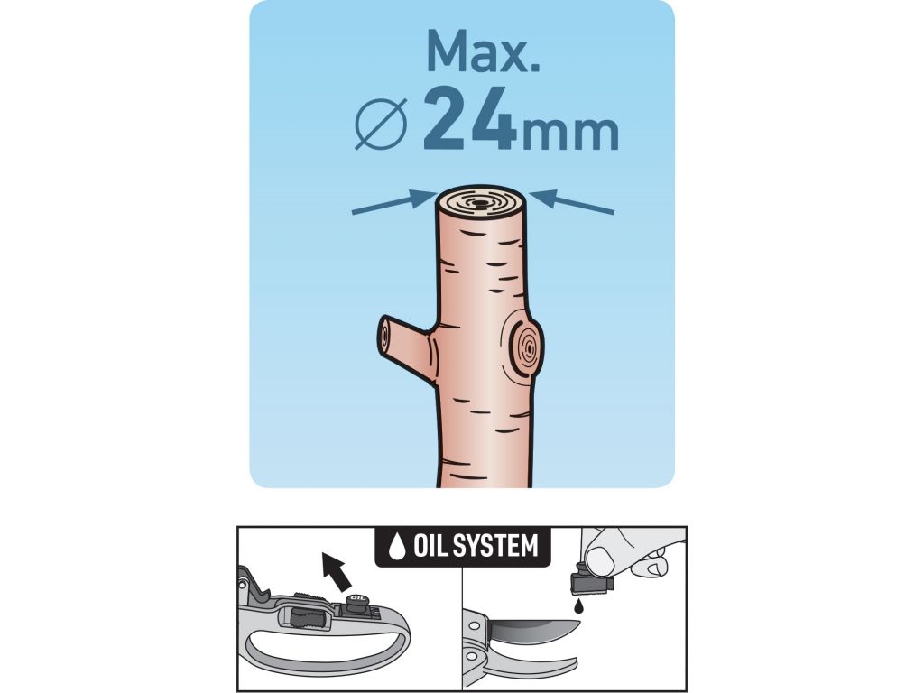 - doplňující parametr: s olejničkou, na stříhání větví do průměru 24mm