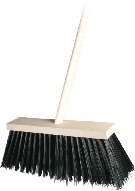 Dřevěné těleso 35 x 7 cm, hůl 140 cm, syntetická vlákna (PET) - VD 130 mm.