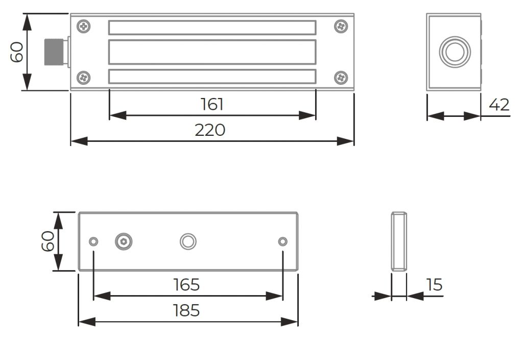 Přídržný elektromagnet s přídržnou silou 500kg, 12/24V, kontakt pro monitoring, odběr 400 - 200 mA, voděodolný.