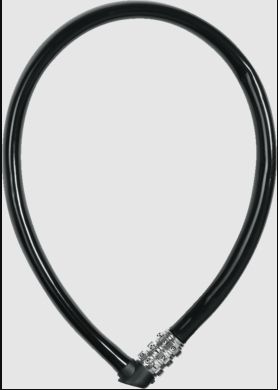6 mm silné lanko, kódový zámek s třímístným číselníkem, mnoho barevných provedení, celková délka 55 cm, hmotnost 114g