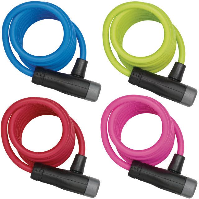 8 mm silné ocelové lano, automatické uzamykání bez použití klíče, délka lana 150 cm, hmotnost 250 g, 4 barvy (pink, red, green, blue)