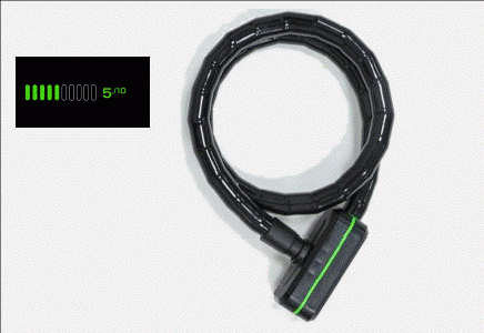 Kvalitní uzamykací systém. Kabel se skládá z ocelových válečků. Držák zámku pro připevnění na jízdní kolo