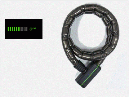 Kvalitní uzamykací systém. Kabel se skládá z ocelových válečků. Držák pro upevnění zámku na jízdní kolo.
