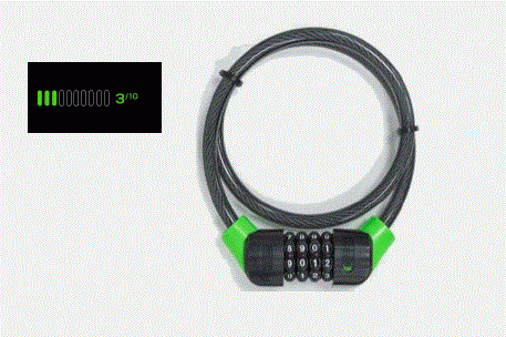 Čtyřmístný číselný kód, držák pro připevnění zámku na jízdní kolo, tloušťka kabelu 10 mm, délka kabelu 80 cm