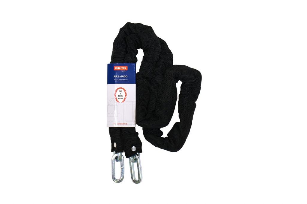 BEZPEČNOSTNÍ ŘETĚZ HARDENED O MIN. PEVNOSTI 52 HRC S OCHRANNÝM KRYTEM Z TEXTILIE Oko řetězu: • O 8 mm Hmotnost netto: • RR.8x1800 – 2,2 kg Vhodné pro visací zámky: • RR.8x1000 - RV.HERMES.65, RV.FORTIS.70 • RR.8x1800 - RV.HERMES.65, RV.FORTIS.70 • RR.8x2200 - RV.HERMES.65, RV.FORTIS.70