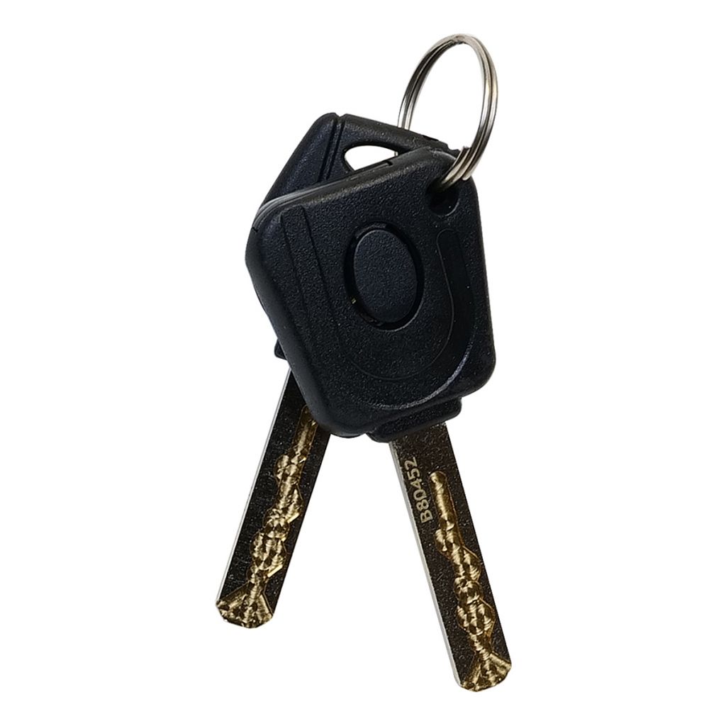 OCELOVÝ VÁLEČKOVÝ ZÁMEK SE SVĚTLEM V KLÍČI • Vložka zámku s 10 odpruženými lamelami a krytem proti vniknutí nečistot. • Balení vč. 2 ks klíčů (1 ks se světlem). Hmotnost netto: 1,04 kg Barva: černá kouřová