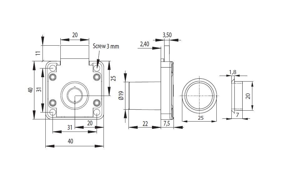 SISO nábytkový zámek 850 Cr TRUB.KLIČ
