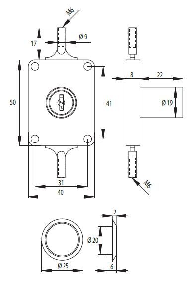 SISO rozvorový zámek 7080/19 Cr bez táhel!!!!!