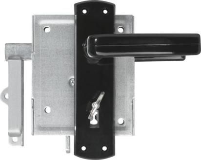 Vrchní zámek s pevnou kontrukcí _ Lze jej použít na pravou i levou stranu _ Vhodný pro zahradní branky, dveře apod. _ Univerzální použití _ Pozinkované tělo zámku _ Rostoucí západka _ BB - dozický klíč