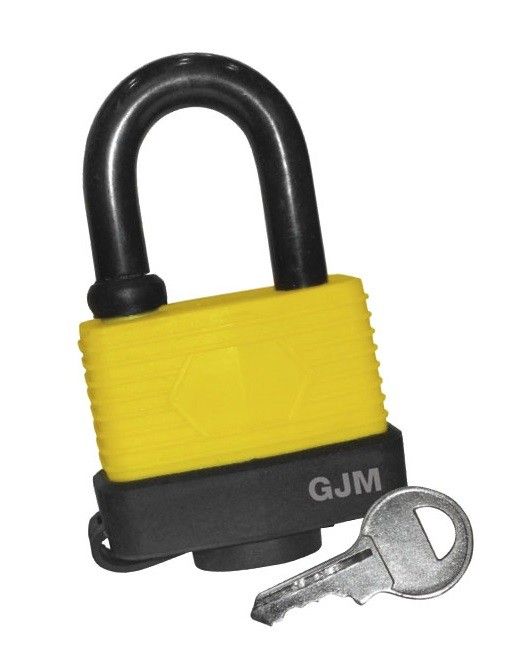 Vodotěsný visací zámek ABUS ECO 328. PVC povrch chrání zámek protí vlhkosti a lépe odolává větsnostním podmínkám. Dodávaný se třemi klíči.