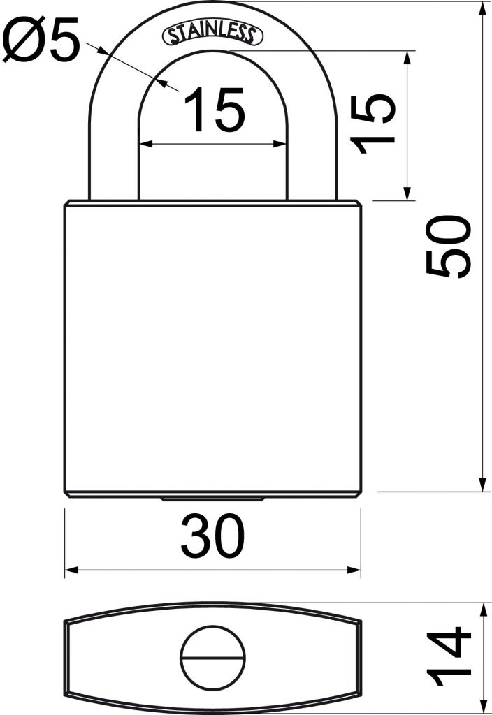 - Třmen a těleso zámku z nerezové oceli