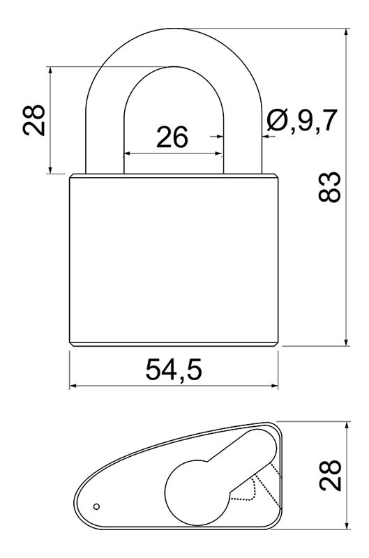 Popis produktu Visací zámek na půlvložku RV.310.L mosaz
