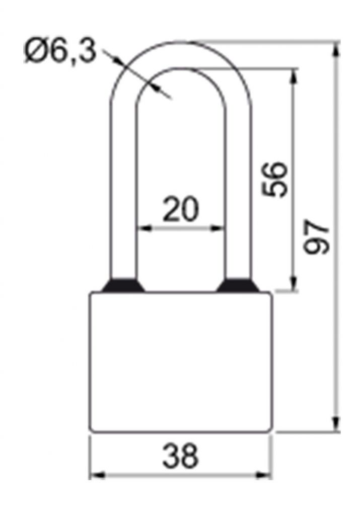 Popis produktu Visací zámek OVAL 38MM dlouhé oko SU