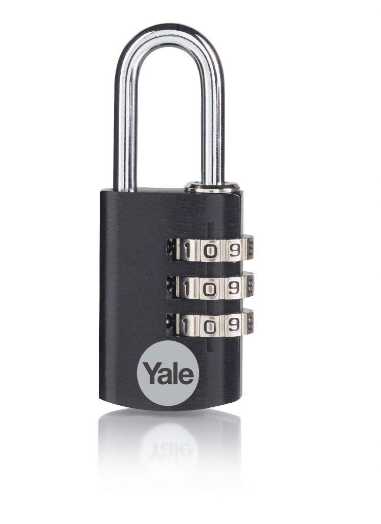 Visací zámek Yale YE3CB/20/121/1/BK, hliníkový, šířka 21 mm, s číselnou kombinací, černý. Se standardním stupněm zabezpečení. Zavírání bez klíče. Lehká váha. Barevný visací zámek s čísly. Hliníkové tělo. Ocelový držák. Volně volitelná, nastavitelná číselná kombinace.