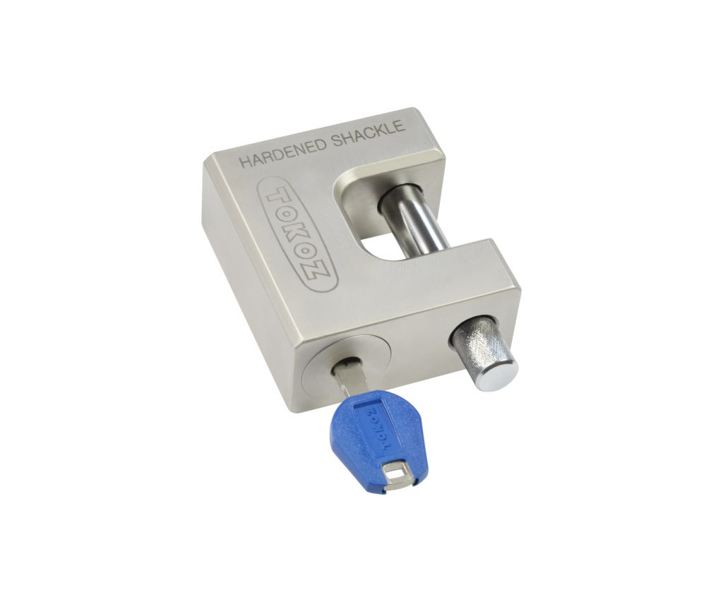 - bezpečnostní zamykací systém TOKOZ PRO - certifikován dle ČSN EN 12320 (RC 4) - univerzální vysoce bezpečnostní zámek - spolehlivě funguje i ve ztížených klimatických podmínkách (voda, mráz, prach, mastnota) - vhodný pro extrémně silné spojení řetězů pro jakékoli využití (garáže, různé skladové prostory, přepravní kontejnery, stavební buňky, ...) - mohutný zámek vhodný pro zabezpečení venkovních vrat, dveří, menších objektů - zamykací systém z nerezu je chráněn prachovou a dešťovou krytkou - kalený (HARDENED) třmen o 12 mm - dodáváno s pěti klíči a bezpečnostní kartou