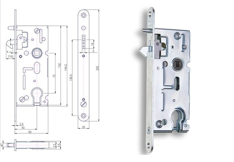 Zámek zadlabací vložkový – na posuvné dveře, bez převodu, nelze použít rozetové kování