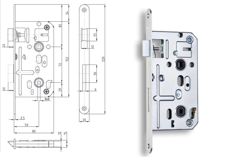 Zadl.zámek K135 P-L 8x8 BZn á 1ks