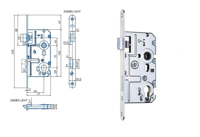 Zadl.zámek K221 L Zn bí á 1ks FAB 72/77