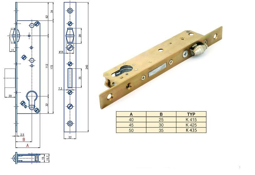 Zadl.zámek K415 P-L bí.ZN PZ 40/30