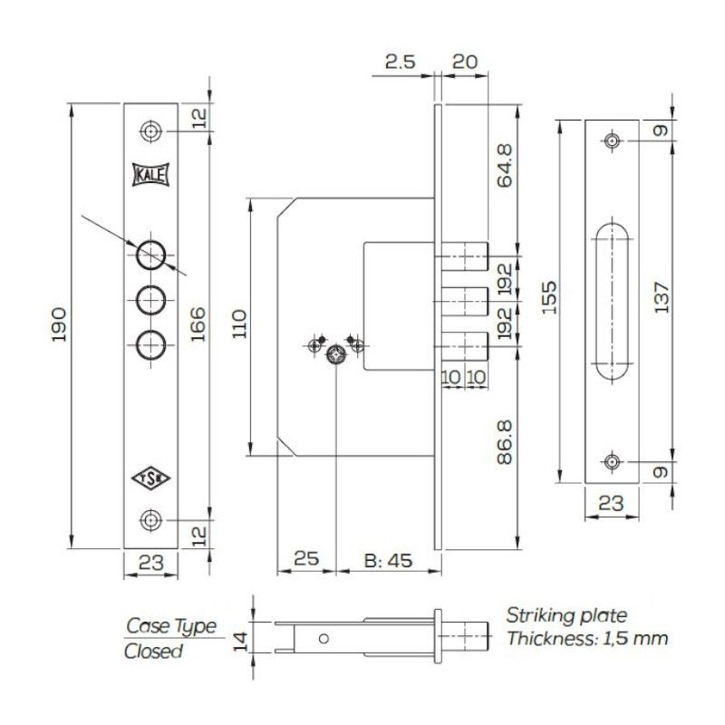 Zadl.zámek KALE 189-3MF S-klíč