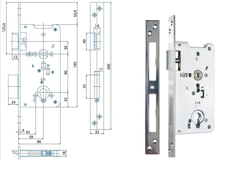 Zámek zadlabací vložkový, zesílený, s převodem