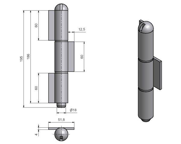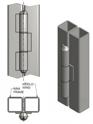 Použití: K otočnému spojení velkorozměrových křídel dveří nebo vrat se zárubní. Připevňuje se přivařením.