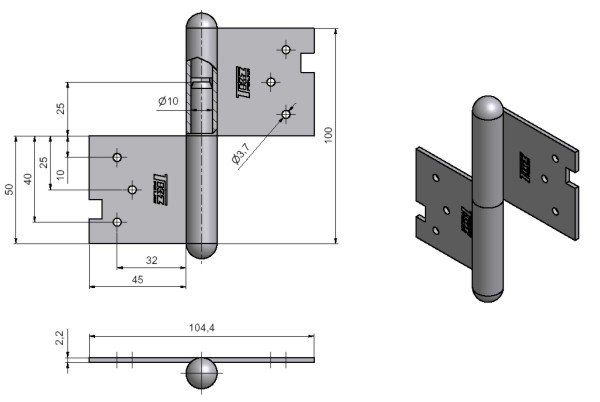 K otočnému spojení dveří s dřevěnou zárubní. Spodní i vrchní díl je k zadlabání. (Vrchní i spodní díl nutno zajistit hřebíky bez hlavičky.)
