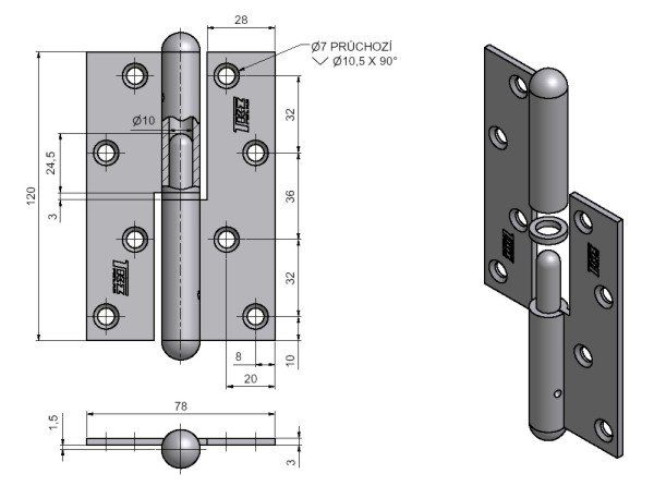 Závěs dveřní 120 rovný L Ms