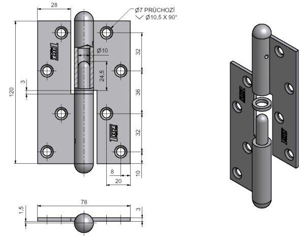 Závěs dveřní 120 rovný Sur. P 93000000